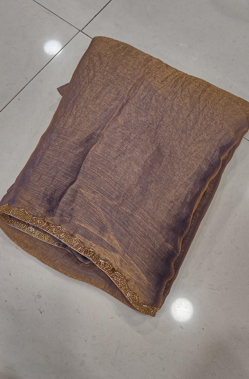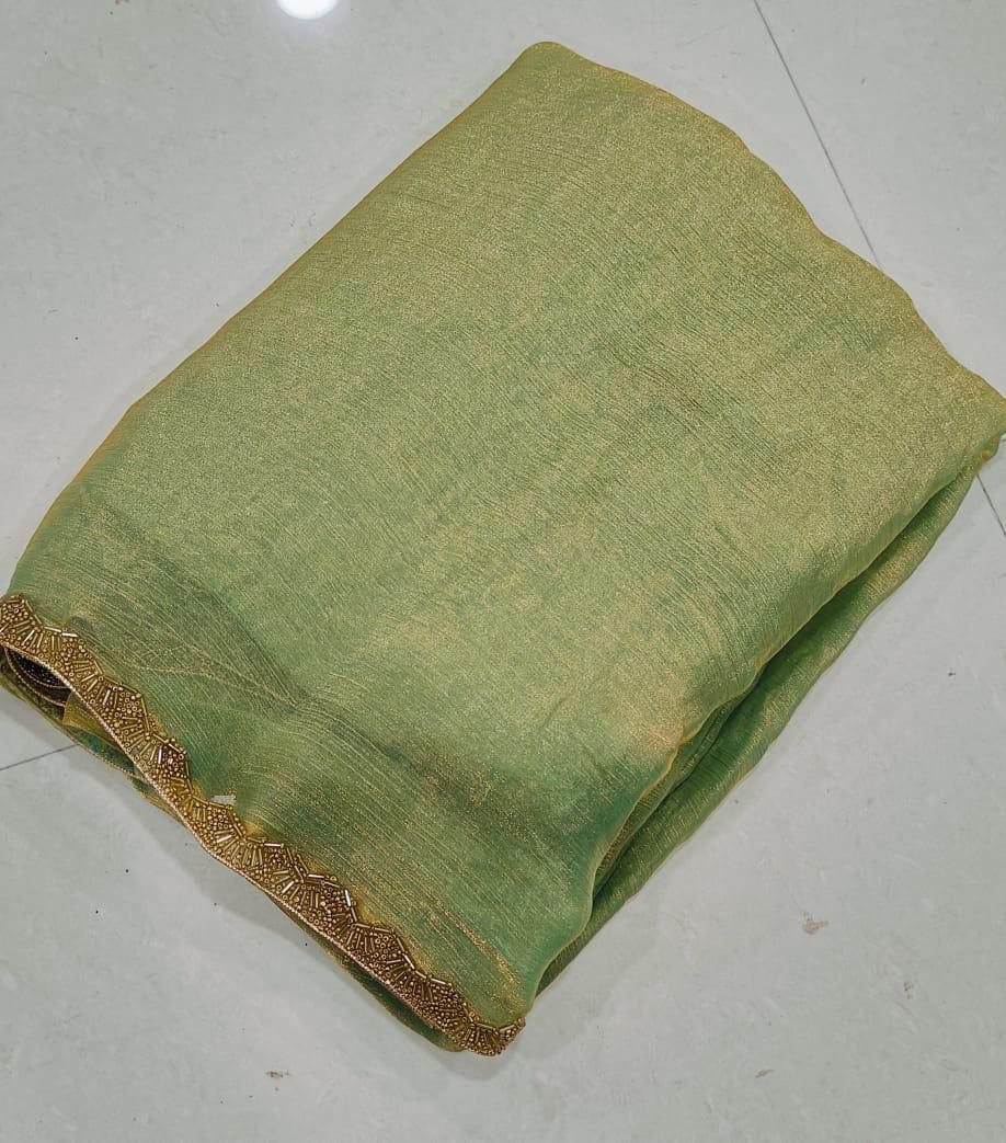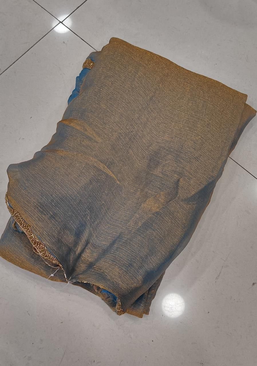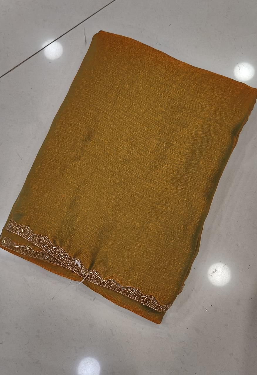 SHIMIRI GOLDEN LIMITED EDITION SAREE* CHIFFON FENDY TWO TONE. SAREE* RICH CHIFFON FENDY SOFT FABRIC WITH BEADS HAND WORK RICH BORDER LOOK RUNNING BLOUSE 👚6.30 CUT WEIGHT:630 GRAMS
