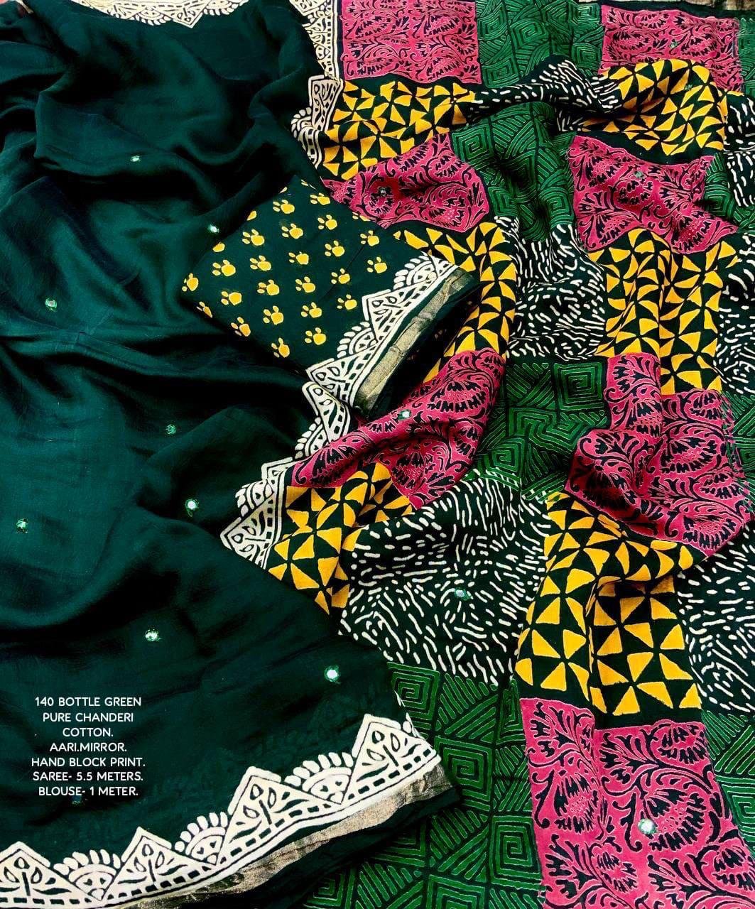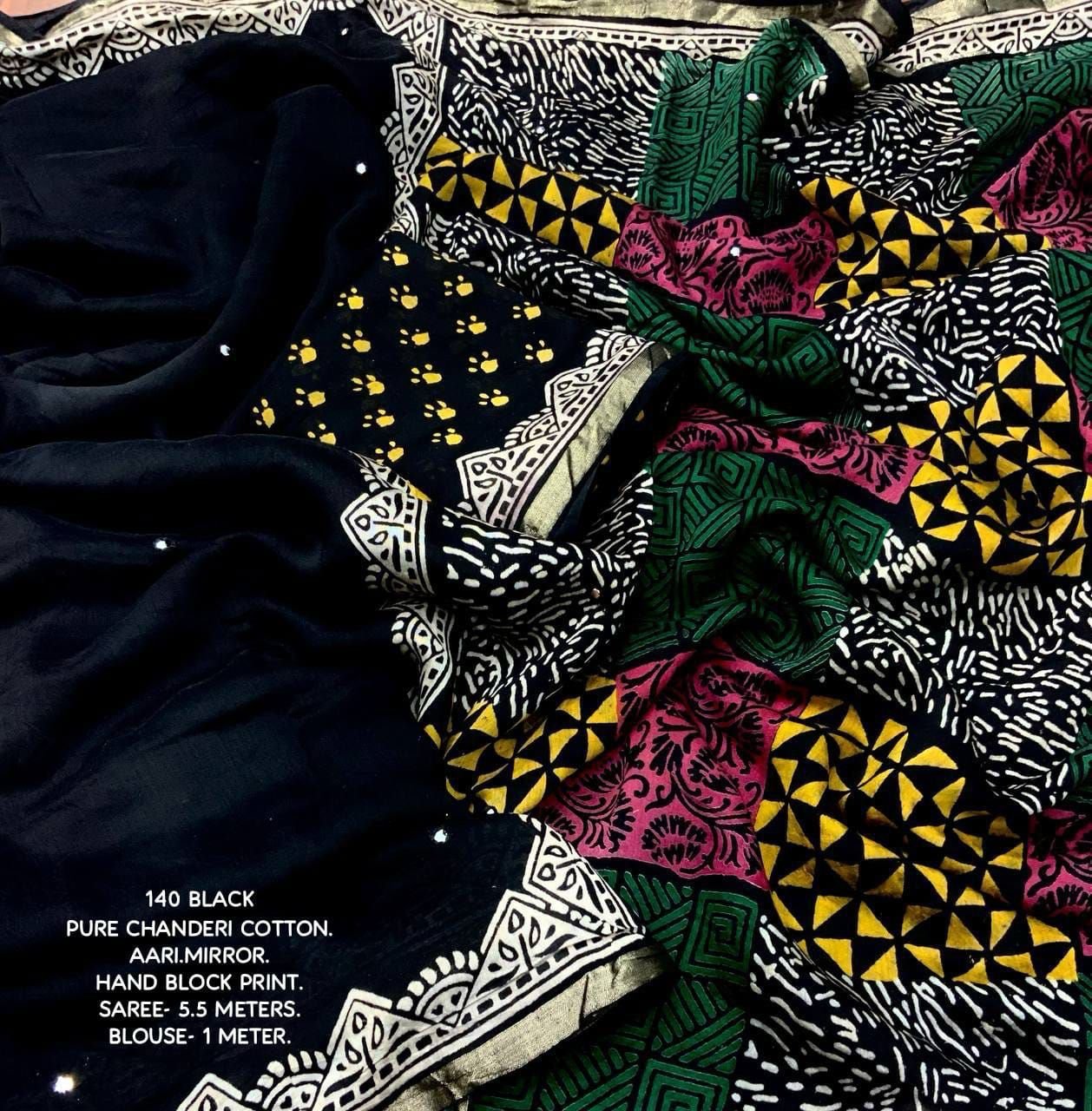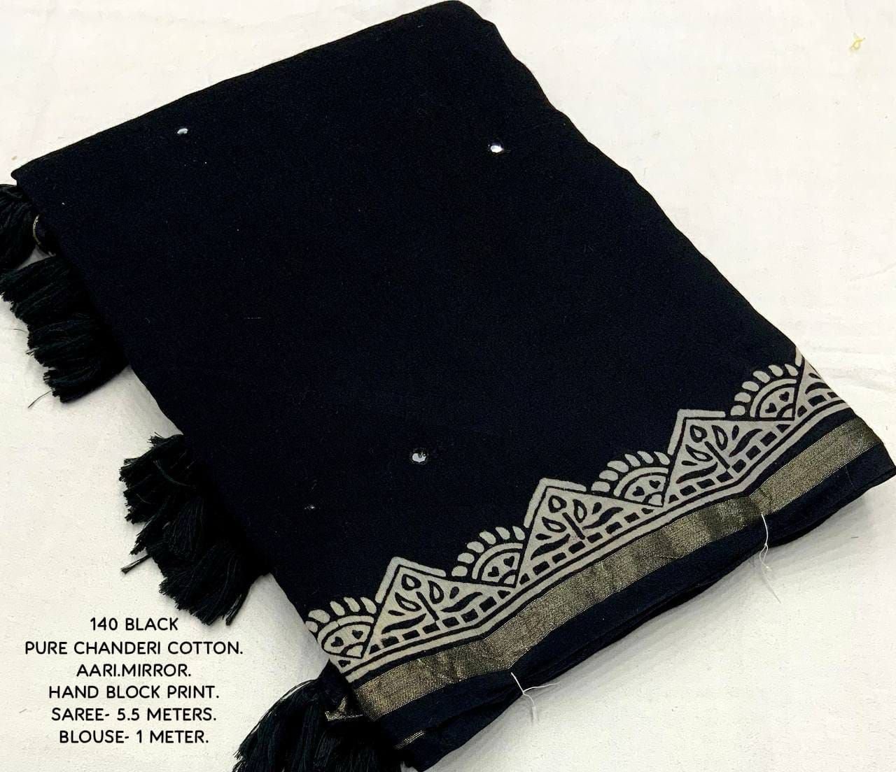 Pure Soft Chanderi Cotton saree 🪷 Soft Chanderi with hand block pallu Design 🪷aari mirror(plastic) allover saree 🪷Blouse: pure chanderi hand block 🪷 Saree L: 5.5 mtrs 🪷 Blouse: 1mtrs 🪷🪷Great Quality 🪷🪷