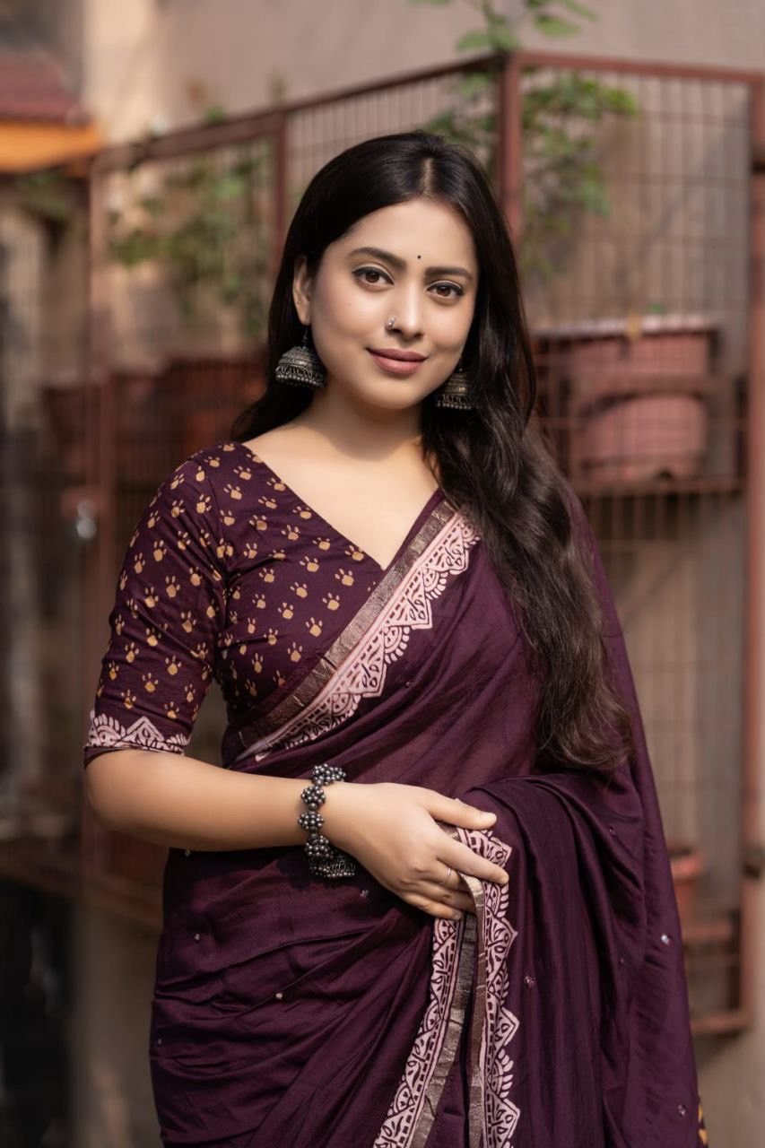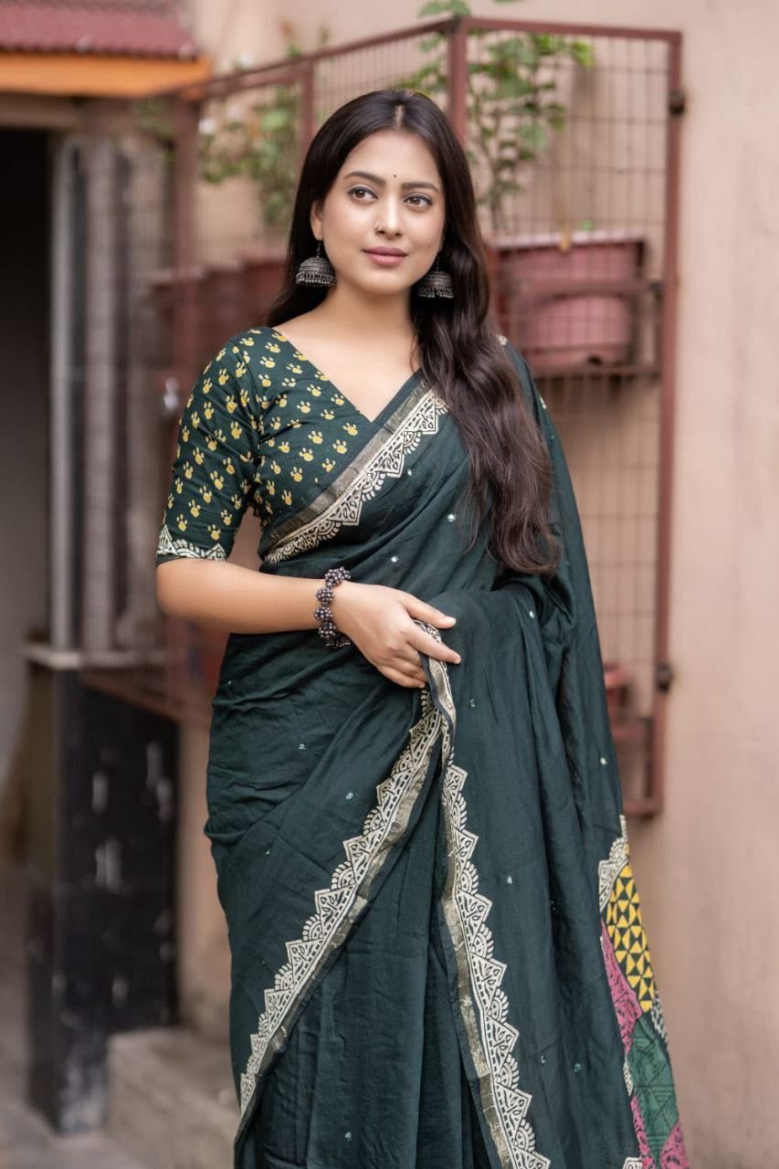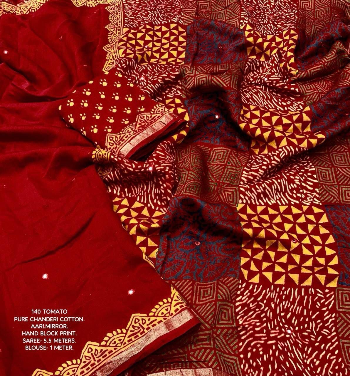 Pure Soft Chanderi Cotton saree 🪷 Soft Chanderi with hand block pallu Design 🪷aari mirror(plastic) allover saree 🪷Blouse: pure chanderi hand block 🪷 Saree L: 5.5 mtrs 🪷 Blouse: 1mtrs 🪷🪷Great Quality 🪷🪷